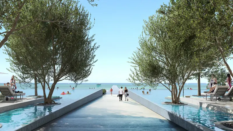 Located just minutes’ drive from Dubai International Airport, Sharjah stands as an up-and-coming holiday destination blending contemporary architecture with rich cultural heritage. In addition to the resort’s amenities such as the beachfront infinity pool and overwater restaurant, residents can explore the vibrant city of Sharjah. From the living heritage district of Heart of Sharjah to the bustling souqs and mosques, there’s a wealth of experiences waiting to be discovered. The façade truly offers the perfect balance of tranquility and adventure for both leisure and business travelers, with close proximity to the Expo Centre.