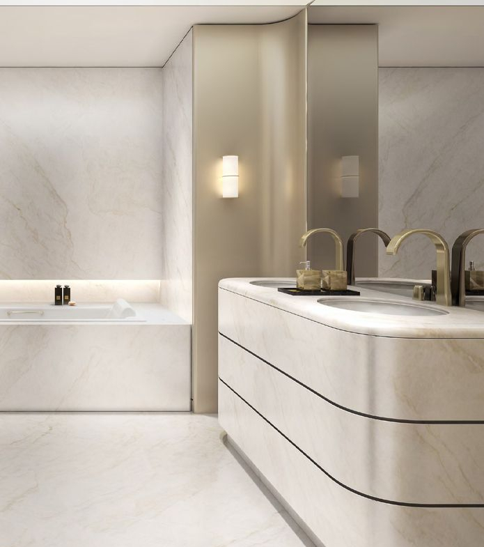 Armani Beach Residences at Palm Jumeirah is an ultra-luxury development by Arada and the iconic Armani Group on the coveted Palm Jumeirah. Armani Group collaborated with the real estate giant, Arada, via the Armani/Casa Interior Design Studio. The sensational complex has various forms of seascapes in its architectural concept.