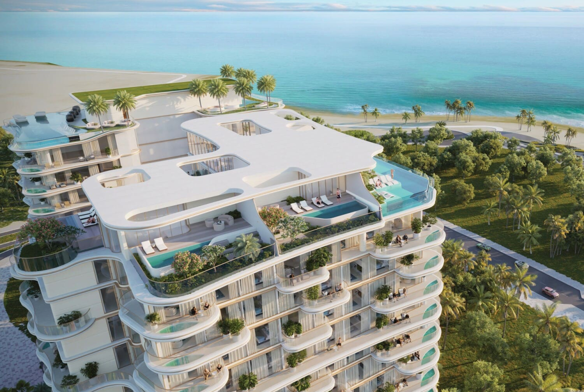 Residents are treated to world-class amenities that make every day feel like a holiday, including shimmering infinity pools, a dedicated kids’ pool, and a sophisticated clubhouse perfect for social gatherings. Families can enjoy the BBQ area, kids’ playground, and an outdoor yoga retreat that brings peaceful moments by the sea. For fitness enthusiasts, there’s an outdoor gym, while those seeking relaxation will love the sunbathing lounge where they can unwind under the Dubai sun.