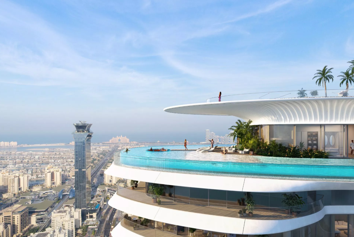 Como Residences will be designed to create a feeling of a never-ending holiday. The highlights of the long-awaited complex include a series of vertical lakes and a rooftop infinity pool that will be located on the 71st floor. On top of that, a 360-degree viewing deck will be situated on the rooftop as well, which will be the highest viewing point on Palm Jumeirah.
