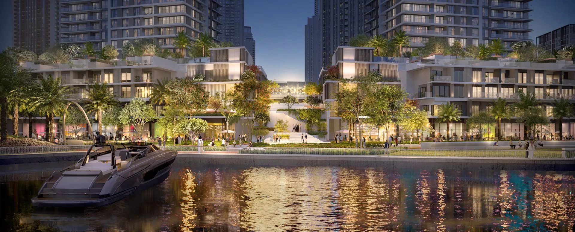 The distinctive features of the stunning penthouses on the upper floors are the private studies and panoramic views of the waterfront. Meanwhile, the townhouses will feature spacious rooftop terraces overlooking the Creek, the famous Dubai skyline and the Creek Island Promenade.