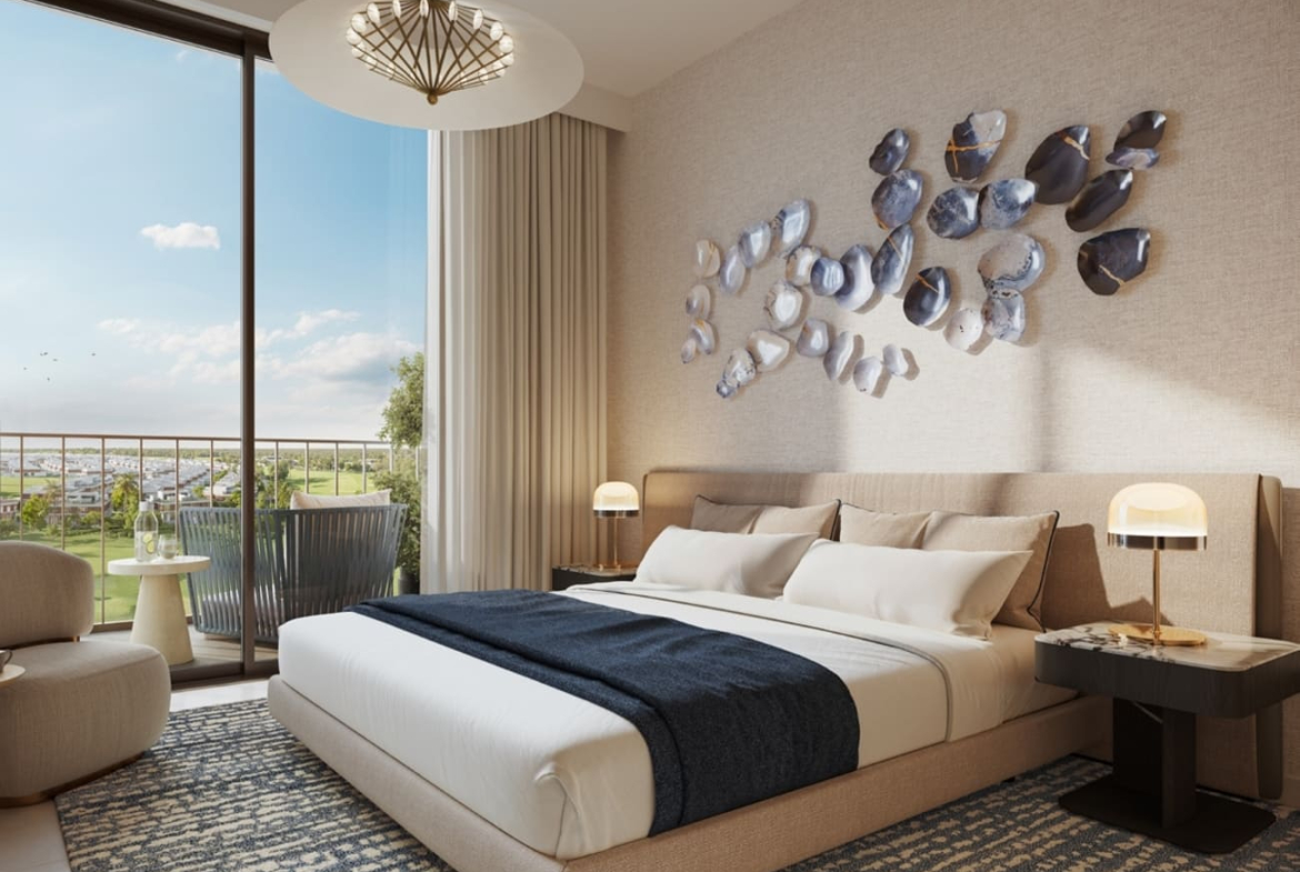 The architectural masterpiece delivers a refined version of contemporary beauty to redefine elegance to rejuvenate. The façade functions as a beautiful architecture ensemble which harmonizes modern design elements with timeless beauty. The exterior combines earth-inspired tones which merge perfectly with the natural environment. The building designs with their straight lines and large balconies with large windows present a powerful yet warm structure that fits perfectly with the course’s green landscape. Every architectural structure achieves environmental harmony through considerate material choices with textural elements thus providing residents with aesthetic functionality.
