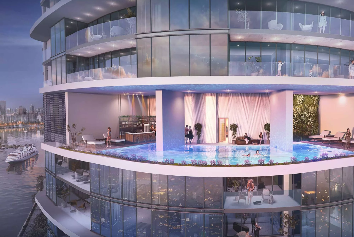 Select residences will have a private swimming pool on the terrace for the utmost convenience of the homeowners. The design of the apartments will feature white and gold decor, chandeliers and ceiling mirrors. Throughout the development, there will be various elements of luxury cruise ships, which will wow with the utmost exquisiteness.