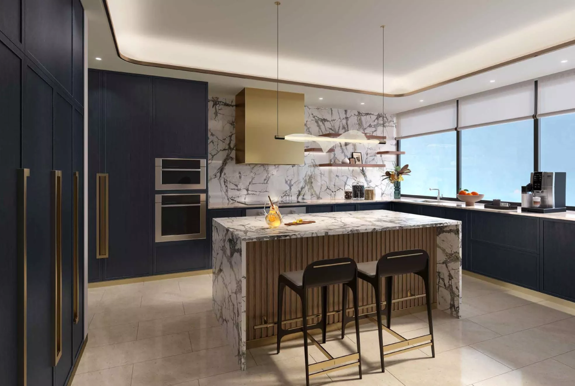 Select residences will have a private swimming pool on the terrace for the utmost convenience of the homeowners. The design of the apartments will feature white and gold decor, chandeliers and ceiling mirrors. Throughout the development, there will be various elements of luxury cruise ships, which will wow with the utmost exquisiteness.
