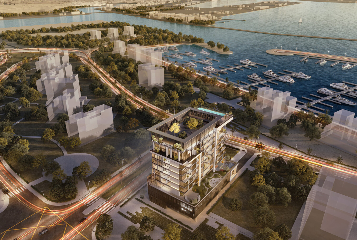 Haven Bay in Dubai Islands, Deira, this new residential project developed by Driven and Metac offers 1- to 4-bedroom apartments and duplexes, is a fusion of innovative designs and modern luxury presented in an 11-storey building comprising 64 units. with sizes ranging from 739 square feet to 6,410 square feet. Each home has been well-planned to combine comfort with elegance. They come with modern kitchens equipped with high-quality Siemens appliances, expansive panoramic windows that frame breathtaking views of the marina and a neutral palette that brings in serenity. High-end finishes add a touch of luxury, while spacious layouts maximize both, living space and functionality. Overall, the architectural design of this complex exudes a modern sophistication with clean lines complemented by contemporary aesthetics.