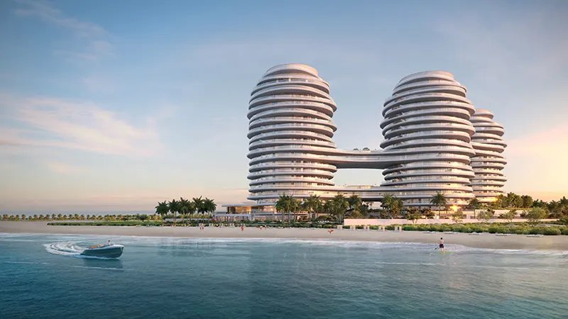 The architectural design emphasizes fluidity, from the towers’ curving facades to the elevated walkways that connect them, creating a seamless flow between luxury residences and shared spaces. This continuity extends to the expansive podium level, which hosts a carefully curated selection of premium retail and dining establishments. With direct beach access and a lush landscaped environment, offers residents and visitors an immersive experience where modern luxury meets serene coastal living.