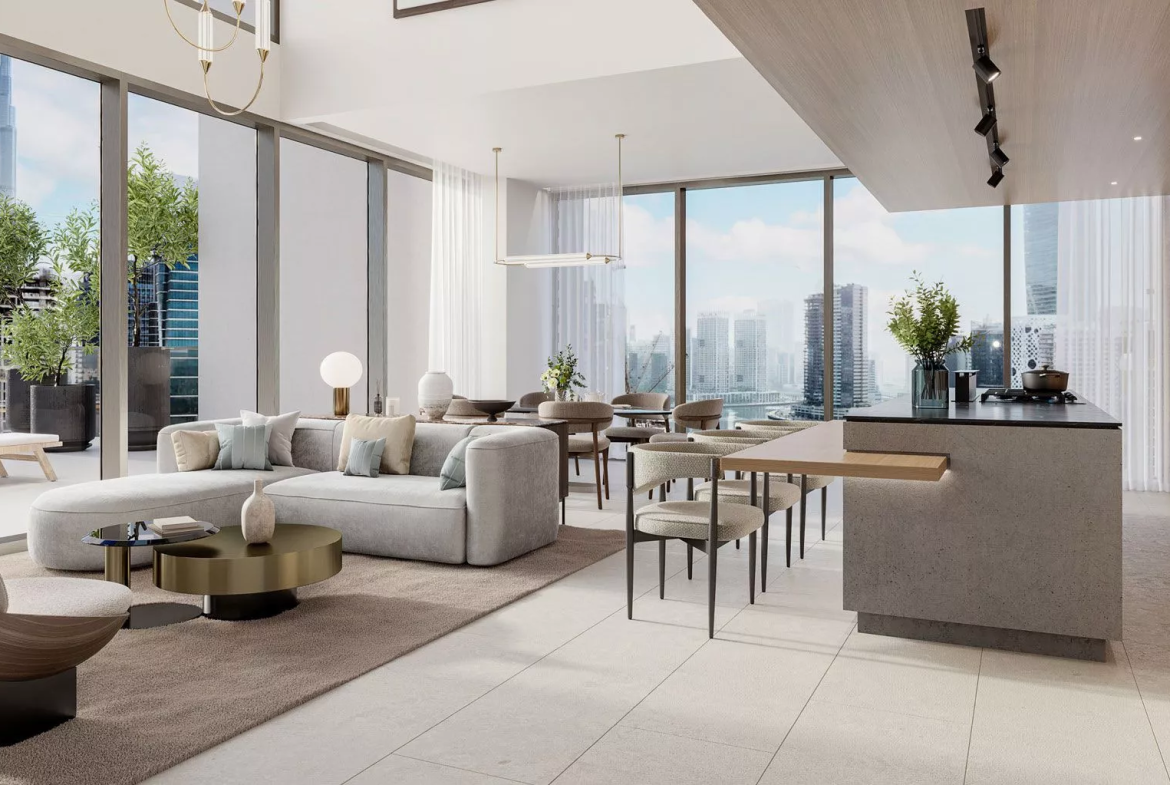 One River Point is a premium 45-storey residential development by Ellington Properties in the ever popular area of Business Bay. Standing tall alongside the Dubai Water Canal, the complex offers a collection of designer studios and 1-3 bedroom apartments. Those who opt for more luxury and space, can choose from 3-4-bedroom duplexes with private swimming pools and 3-4-bedroom penthouses.
