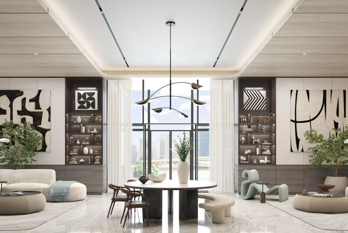 One River Point is a premium 45-storey residential development by Ellington Properties in the ever popular area of Business Bay. Standing tall alongside the Dubai Water Canal, the complex offers a collection of designer studios and 1-3 bedroom apartments. Those who opt for more luxury and space, can choose from 3-4-bedroom duplexes with private swimming pools and 3-4-bedroom penthouses.
