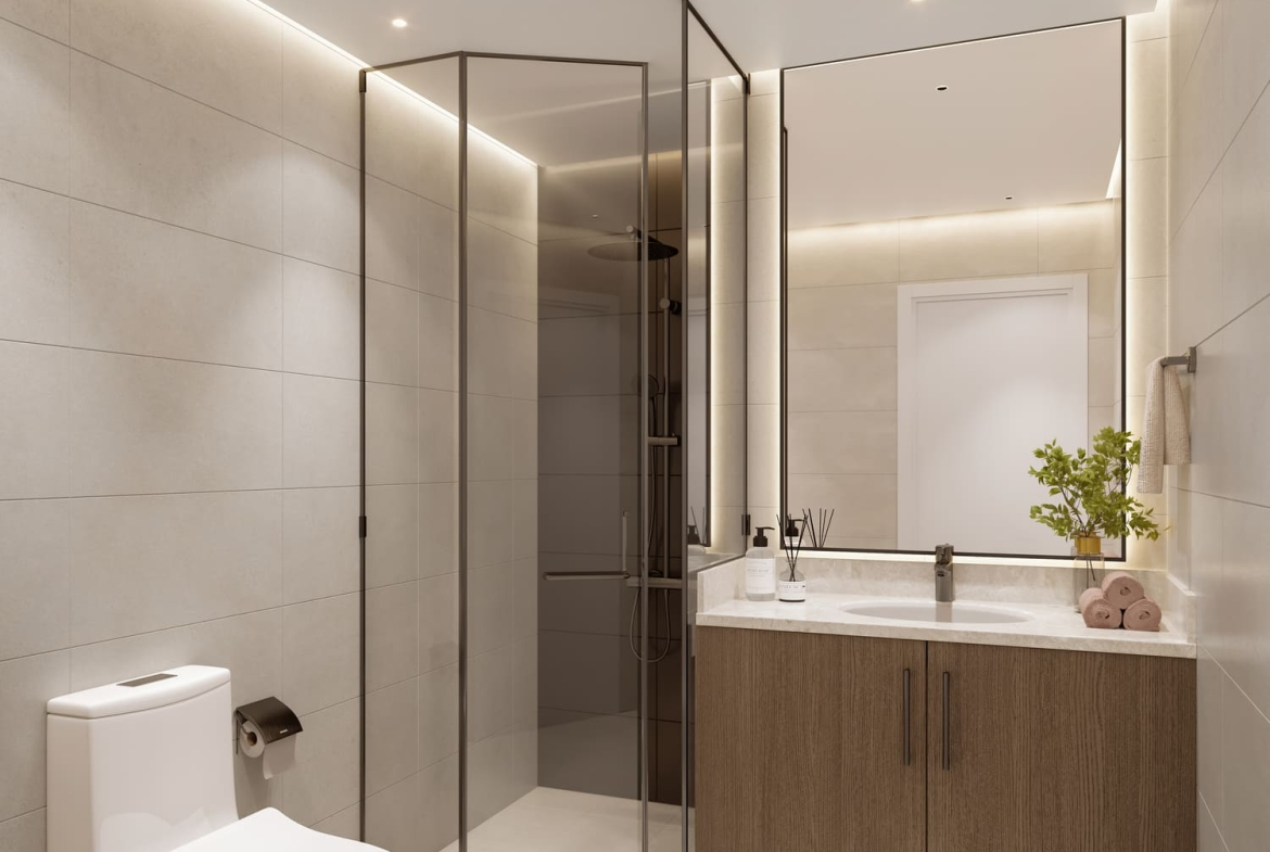 The development rises with modern geometry, blending private serenity and urban sophistication. It offers thoughtfully planned one- and two-bedroom apartments, designed to maximize usability and privacy. With floor-to-ceiling windows, refined finishes, and open layouts, residents are encouraged to create personalized interiors without compromising on natural light or functional flow.