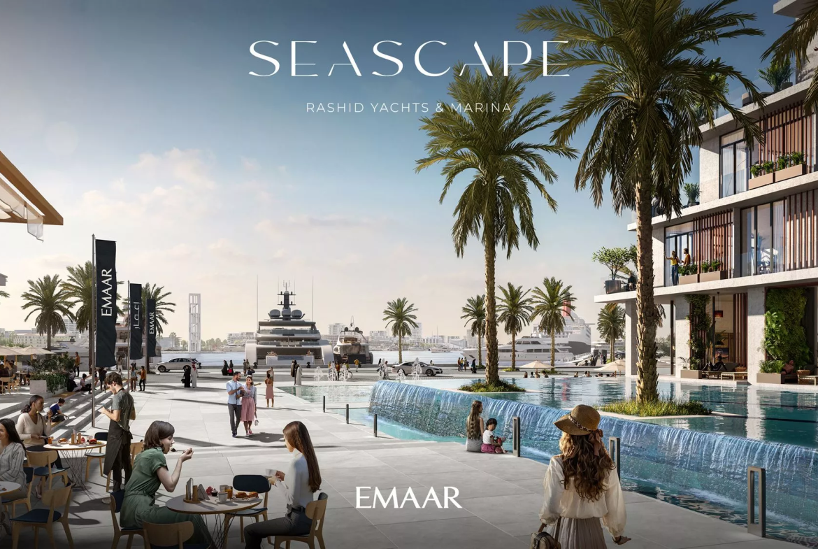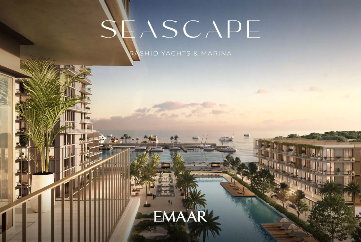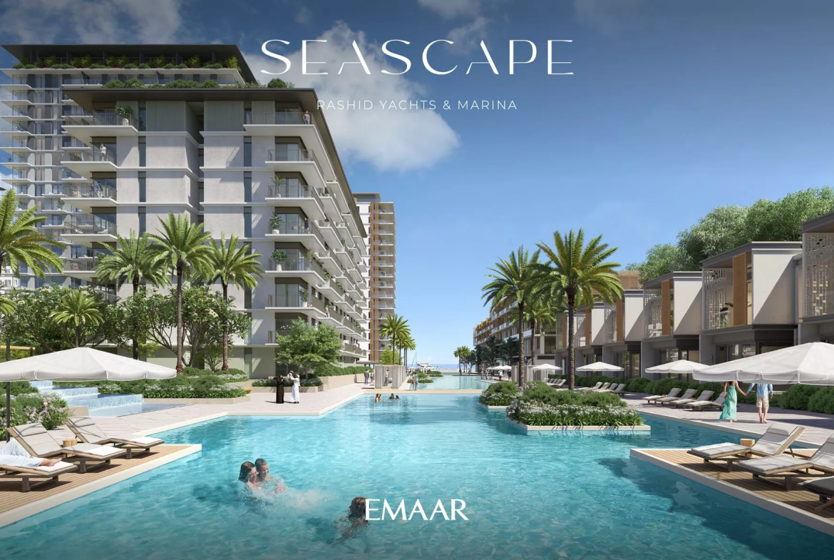 Seascape, launched in Q4 2022, is a prime residential development by Emaar Properties in the vibrant area of Rashid Yachts & Marina. The project will consist of 4 buildings, ranging from 6 to 18 floors, and offers a selection of meticulously designed 1–3 bedroom apartments. There will also be 20 generously-sized 2-storey 3-bedroom townhouses available for purchase. In total, there are 391 residential units in the upcoming complex.