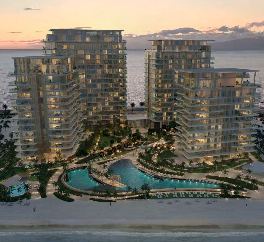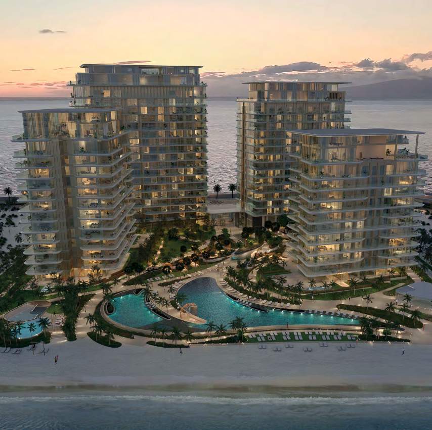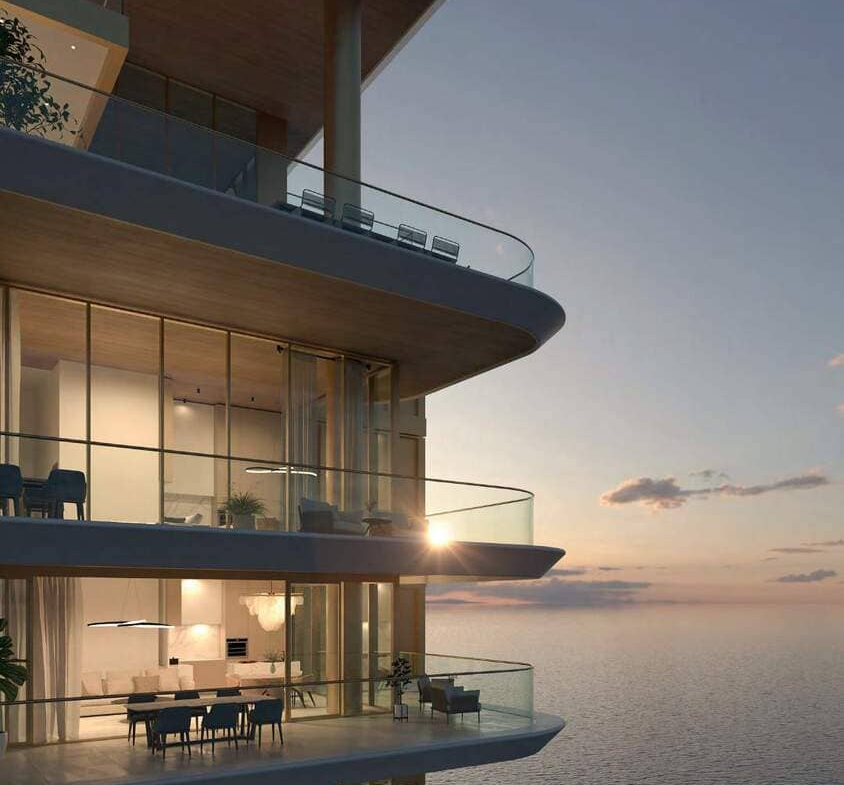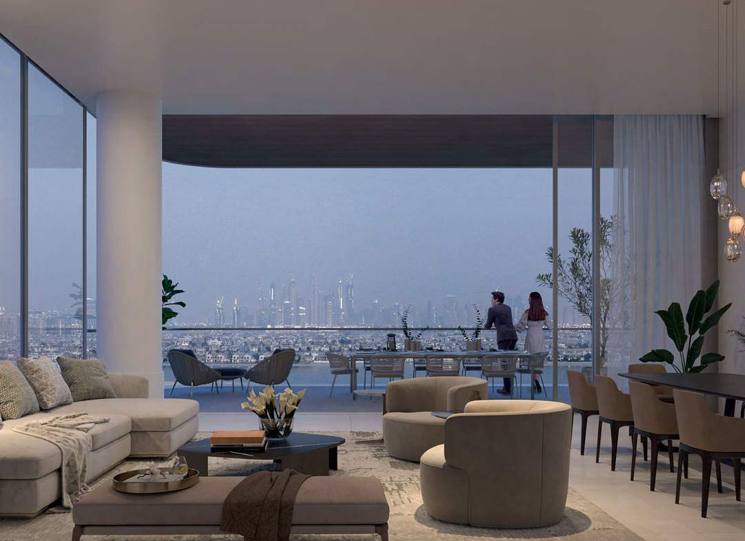 The exteriors of the towers are a visual delight, reflecting Dubai’s world-class living experience and Palma Development’s signature design ethos. High-visibility glass exteriors ensure that every apartment boasts panoramic waterfront views, capturing the essence of the Palm’s status as an iconic residential address. This contemporary design seamlessly blends with the surrounding natural beauty, creating a harmonious environment.